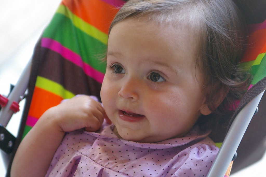 Last month, I shared a precious photo session our friend did of Kate. The pics that I post on the blog and print for framing and scrapbooking are generally the "prettier" ones, taken in the nice outdoor setting with grass and flowers, etc. But Maria kept shooting even when we were just hanging out getting popcicles, and some of those pics in the stroller really capture the "everyday" Kate that I see in our ordinary interactions...